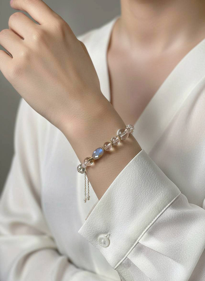 月光石溫柔療癒,喚醒內在的慈悲與包容;太陽石帶來光明希望,照亮奉獻的道路;拉長石引領靈性蛻變,在每次給予中成長;白水晶淨化提升,讓愛與智慧達到完美融合。