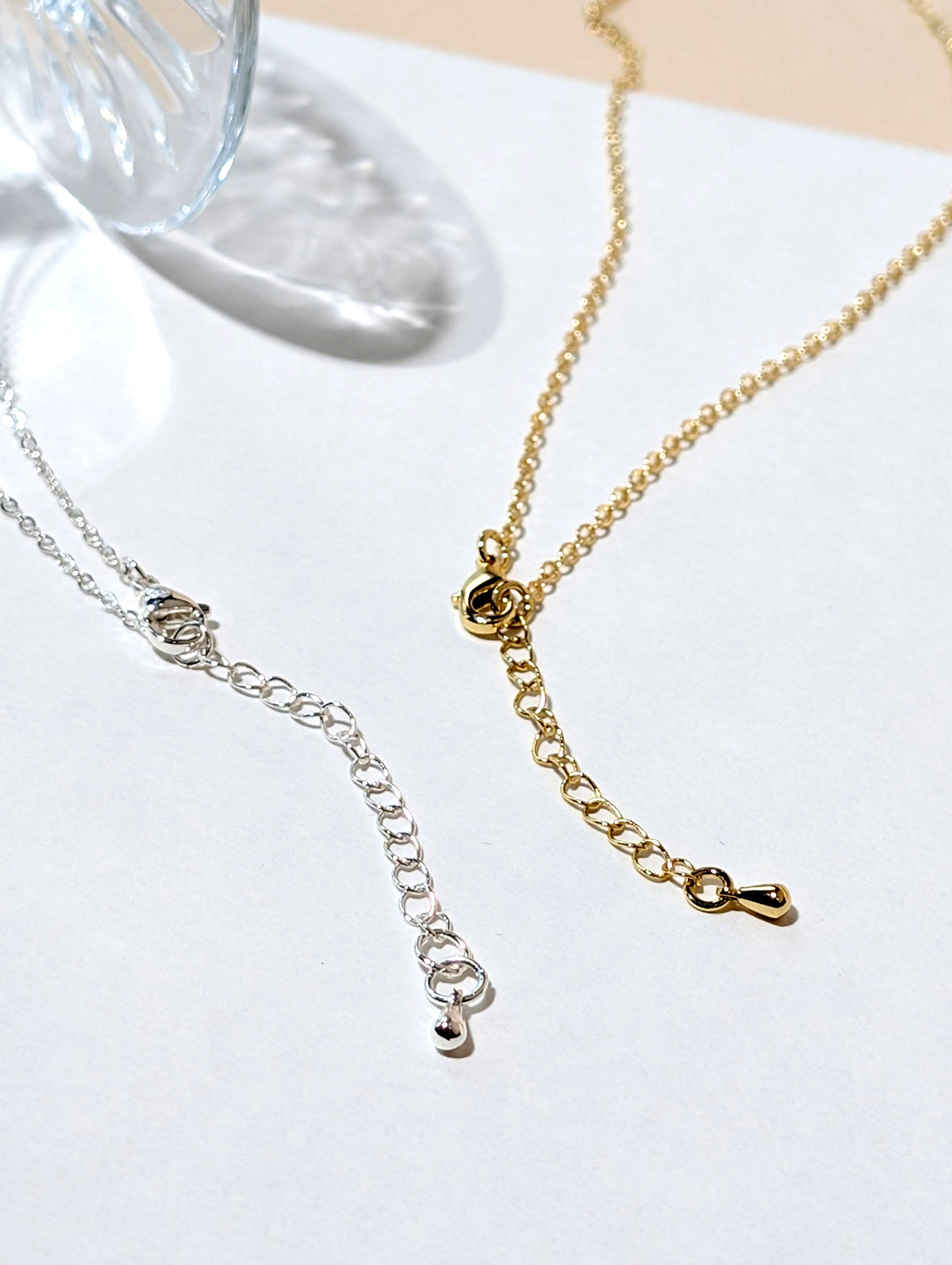 簡約細緻的項鍊;搭配銅鍍18K金、銅鍍銀的金屬配件,耐用又不失奢華。配戴尺寸51cm,附約3.5cm 延長鏈,可依自由調整,佩戴舒適穩固。