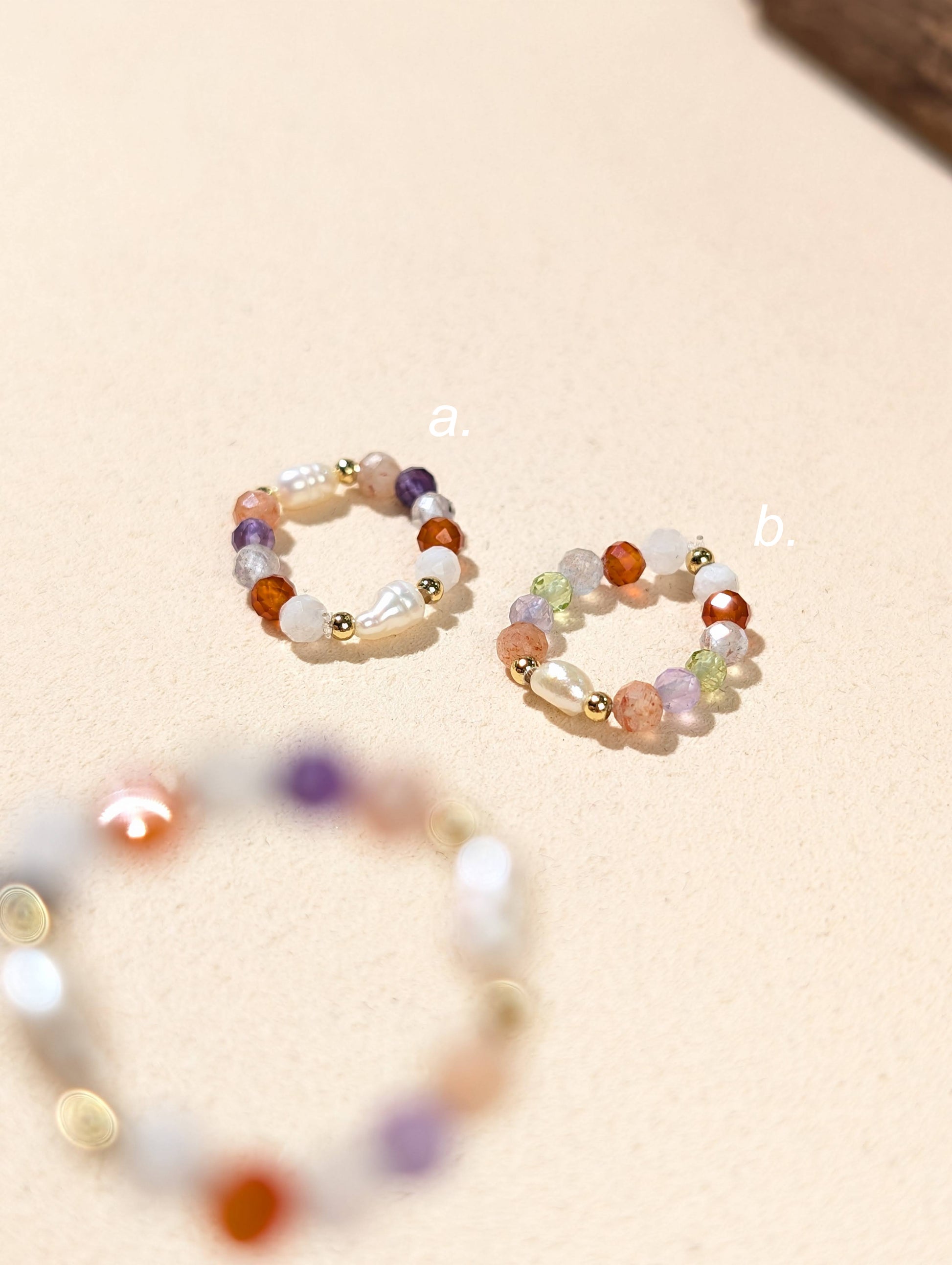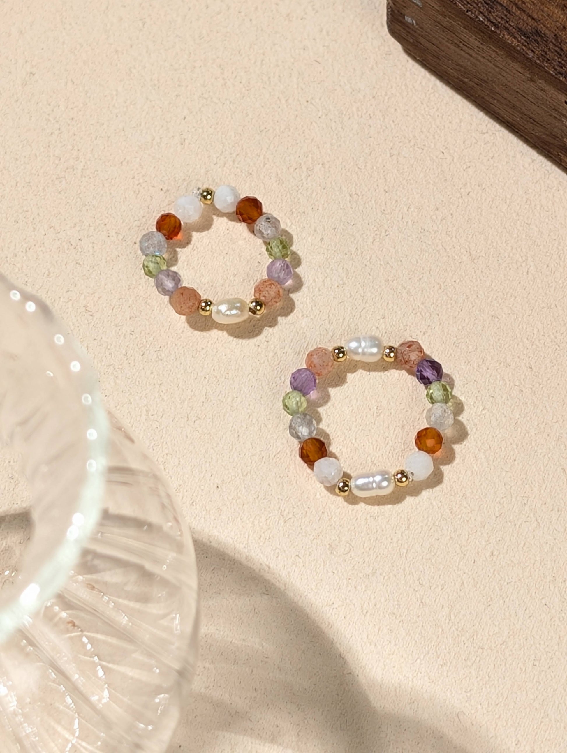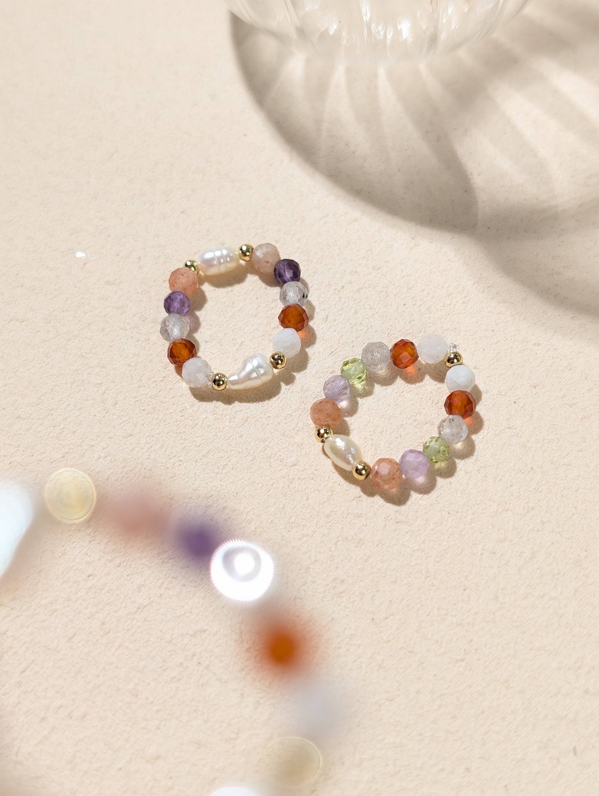 珍珠 紫晶 太陽 紅瑪瑙 月光 橄欖 天然石串珠戒指 JIEGEM姊的珠寶