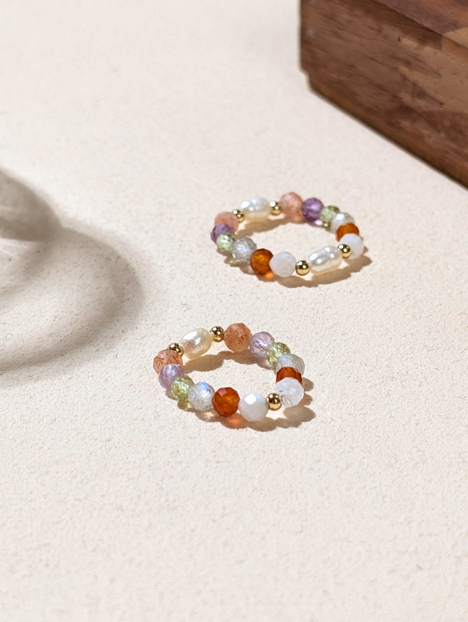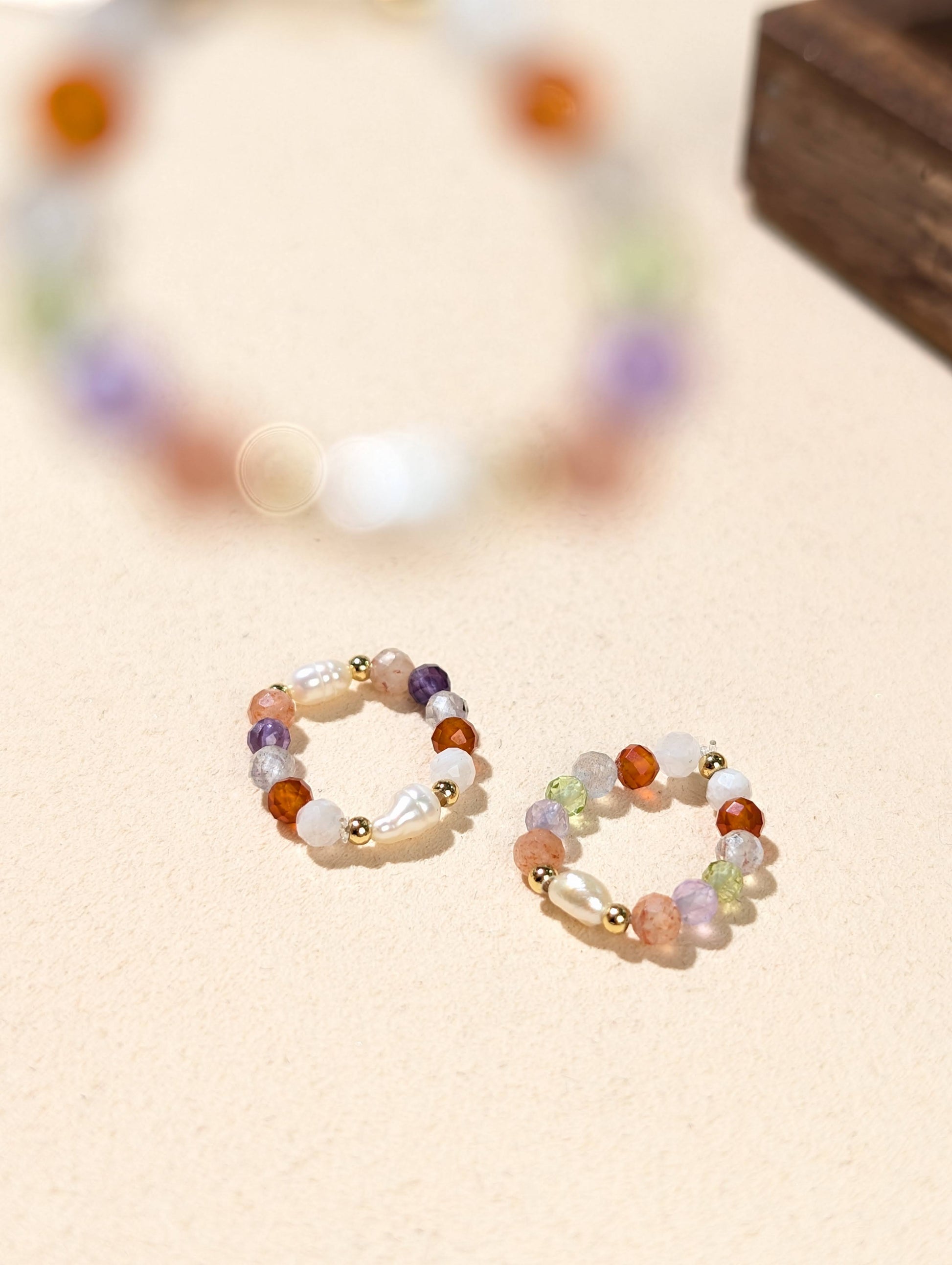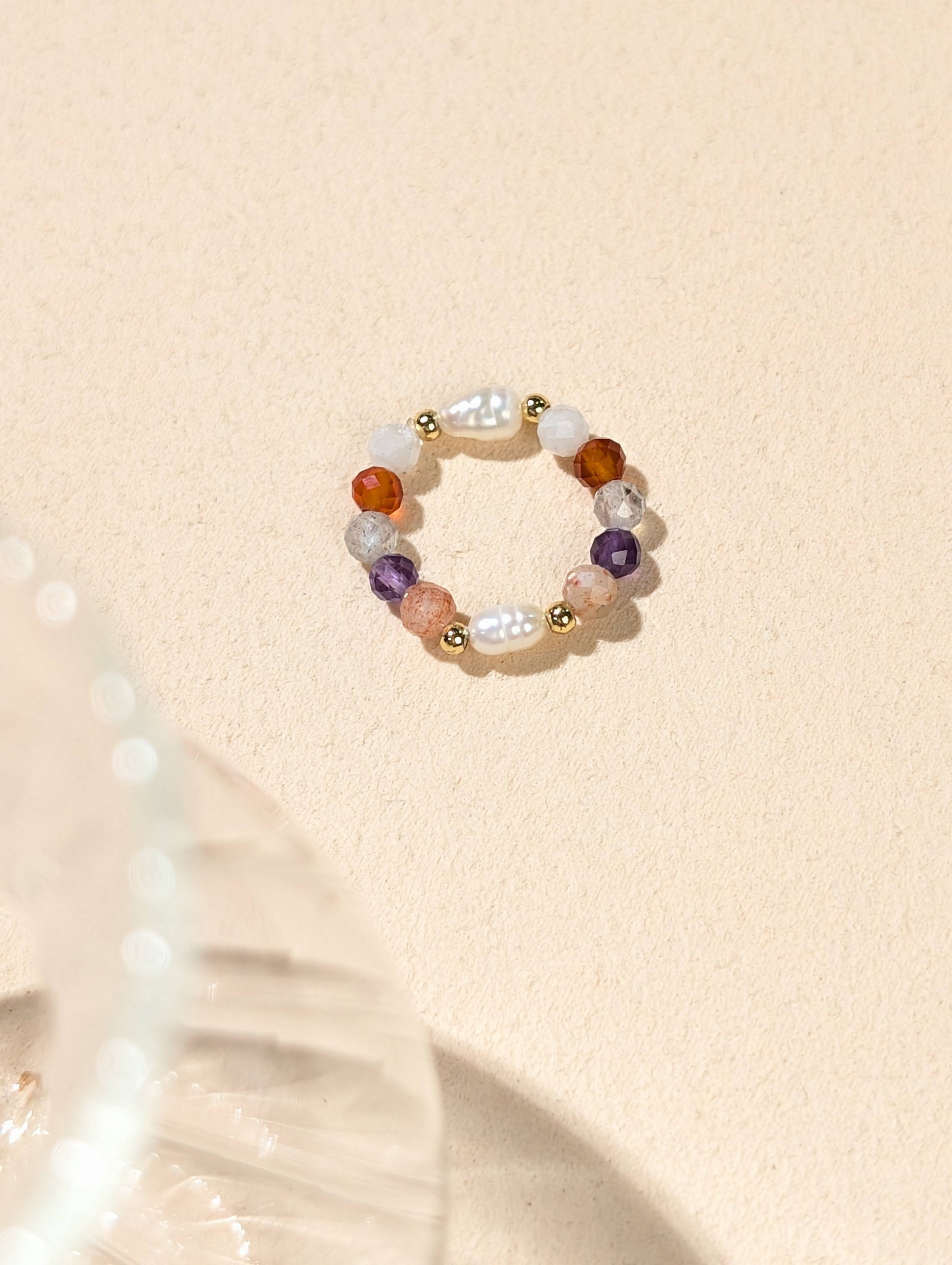 珍珠 紫晶 太陽 紅瑪瑙 月光 橄欖 天然石串珠戒指 JIEGEM姊的珠寶
