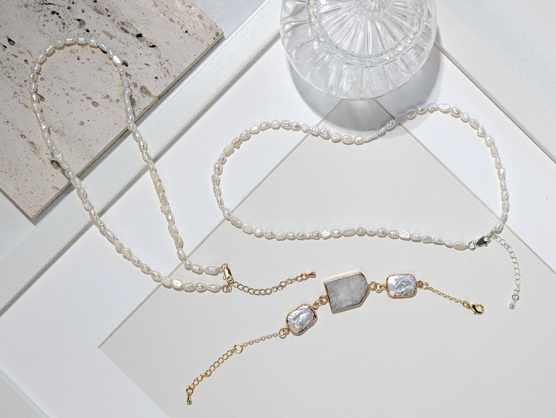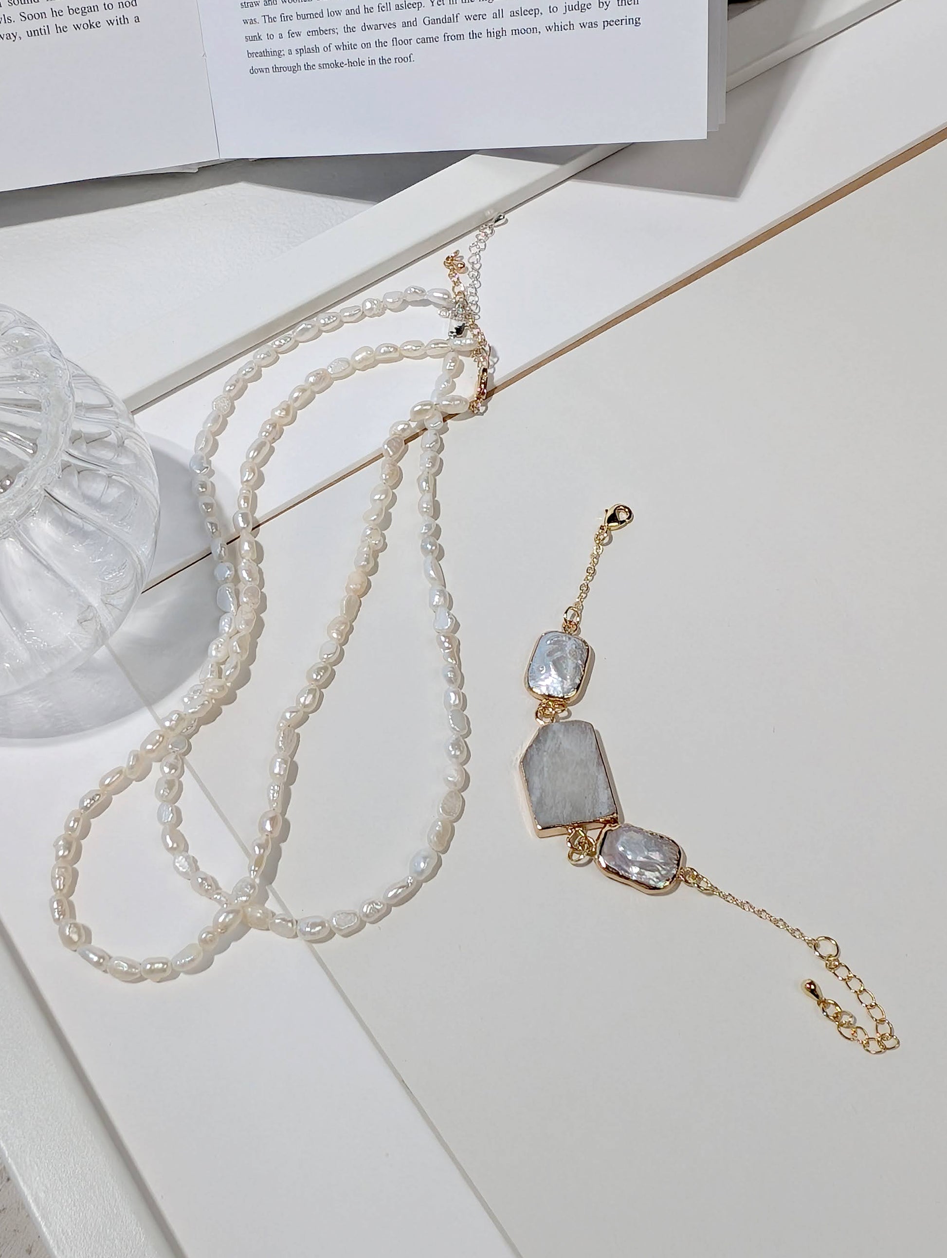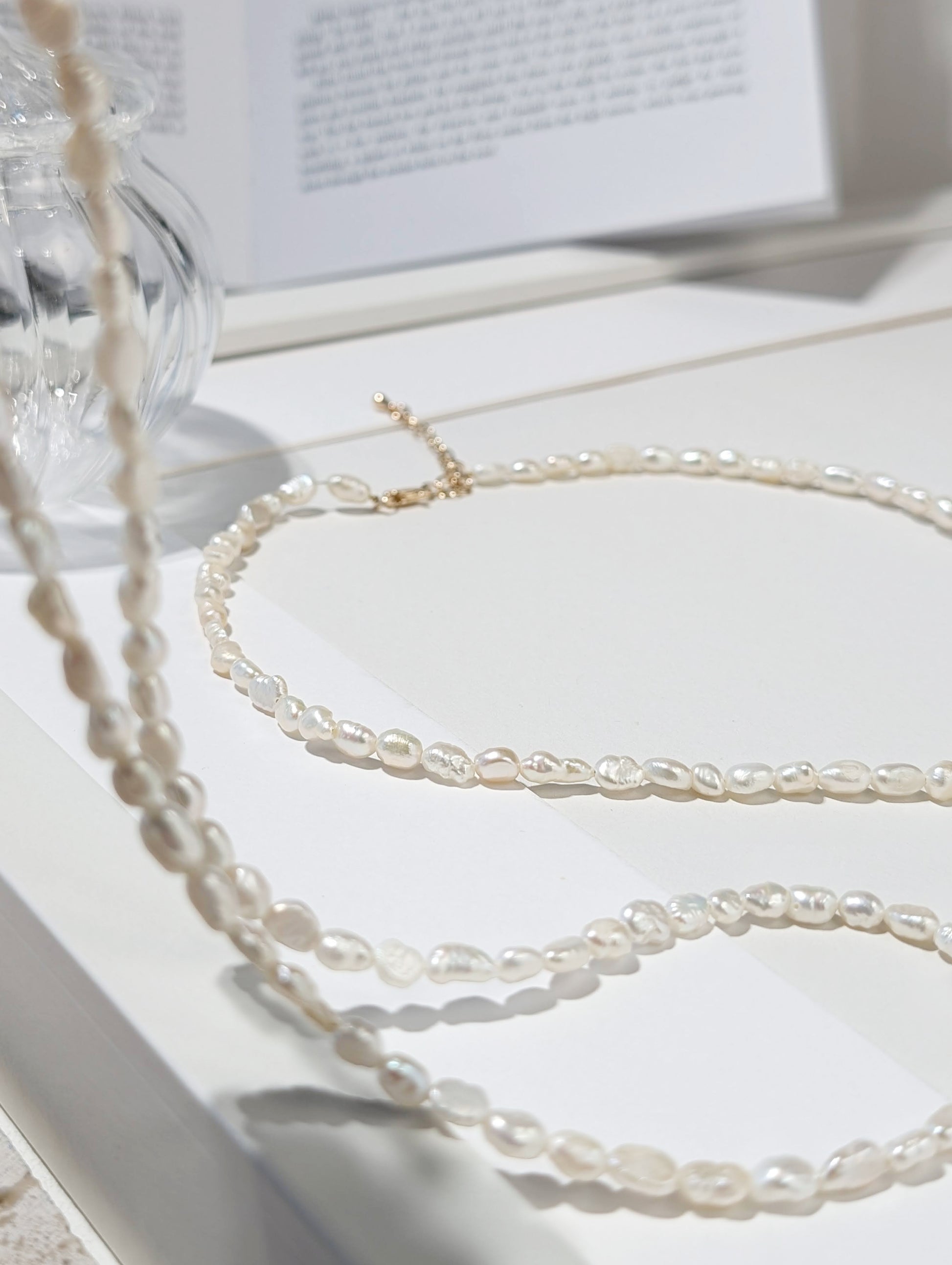 不規則的珍珠,如水面泛起的微漣,映照著月光的柔和光暈。承載著自然的律動與純粹的優雅,在頸間輕聲流轉,如同月色下的海之歌。