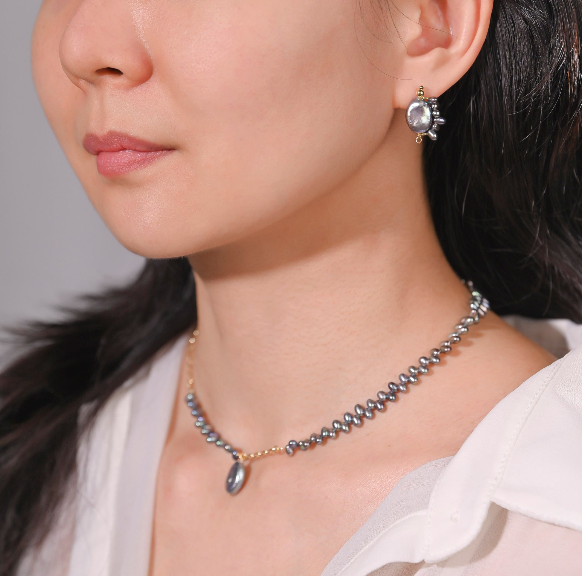 ●石頭尺寸:珍珠 巴洛克馬眼形約12.5x10x5.5mm、珍珠 米珠約4x3mm