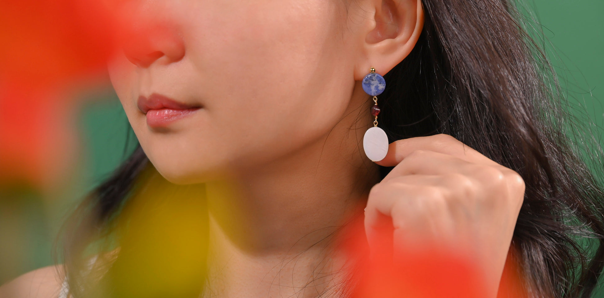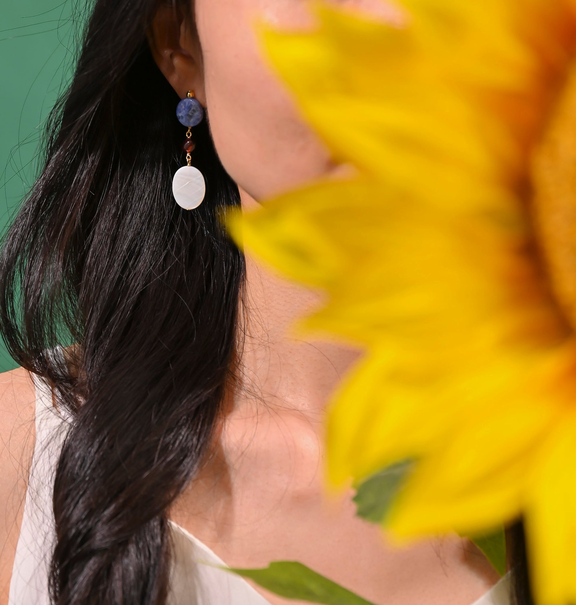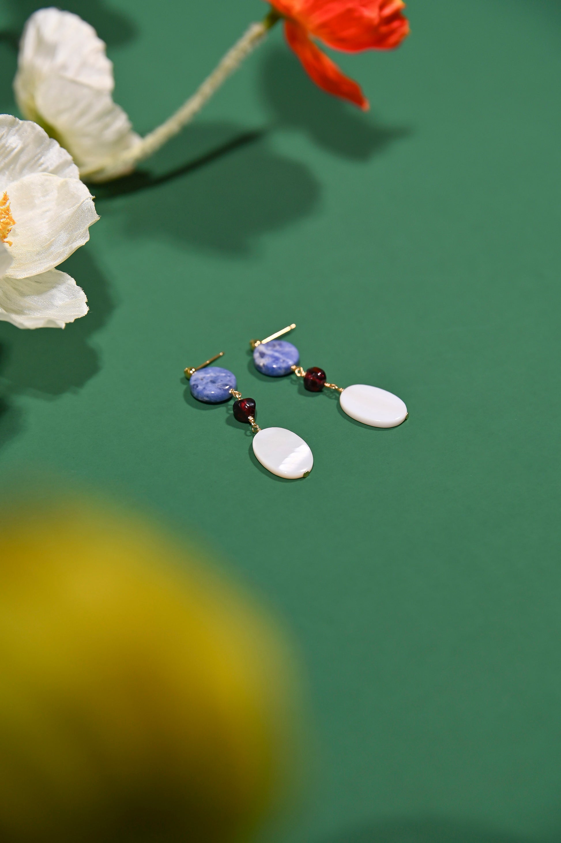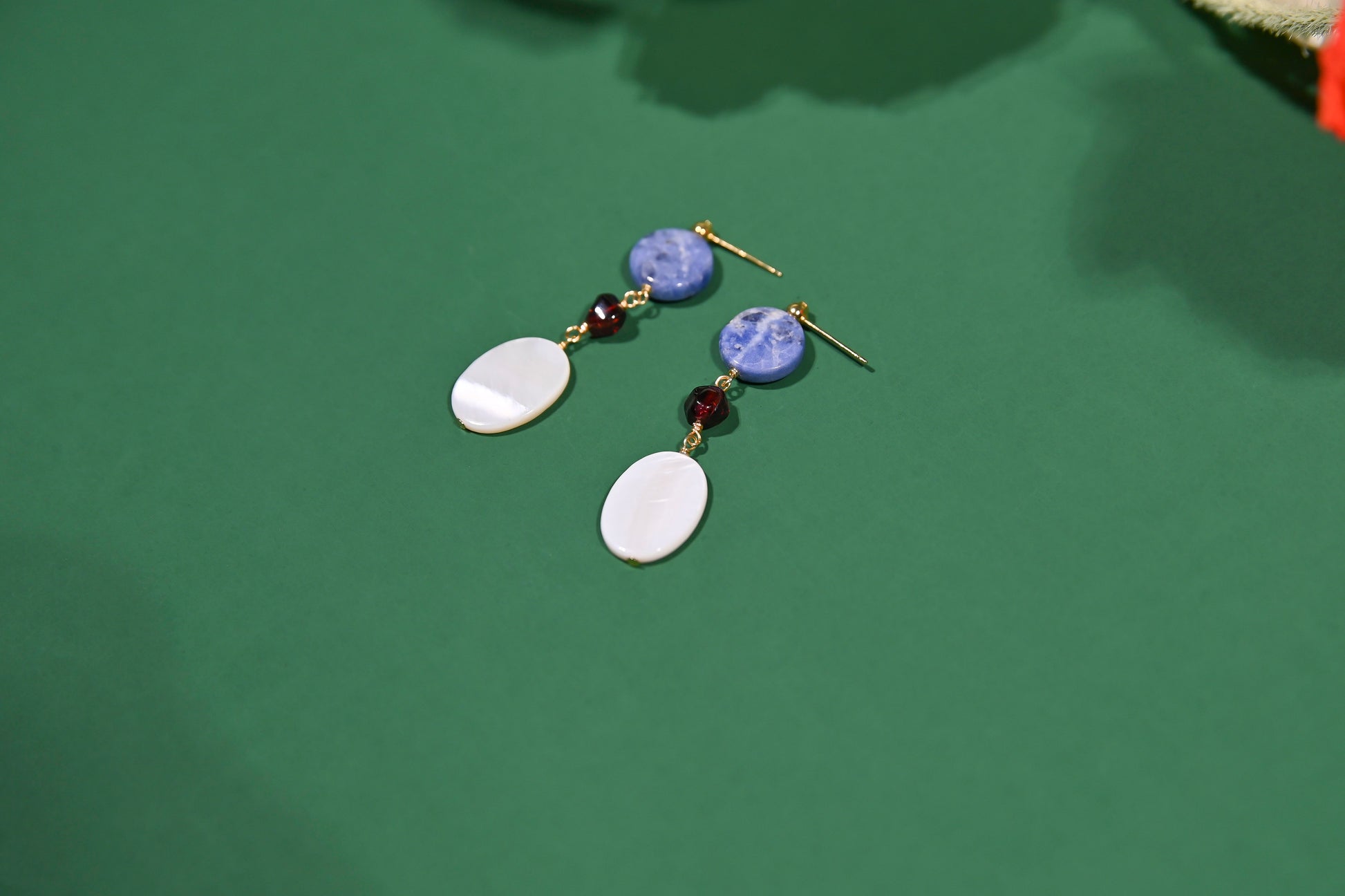 純銀耳環 / 蘇打石 石榴石 貝殼 / JIEGEM 姊的珠寶2223E35c