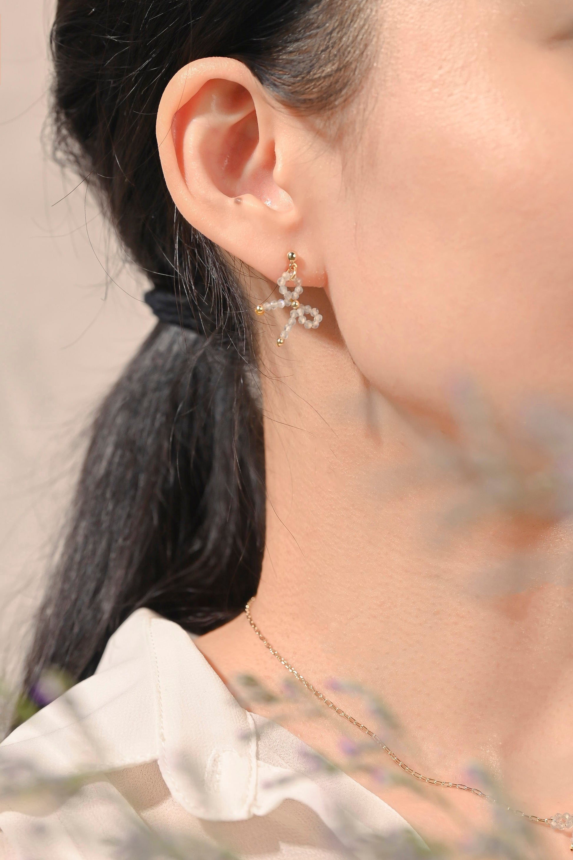 蝴蝶結純銀耳環 / 拉長石 / JIEGEM 姊的珠寶