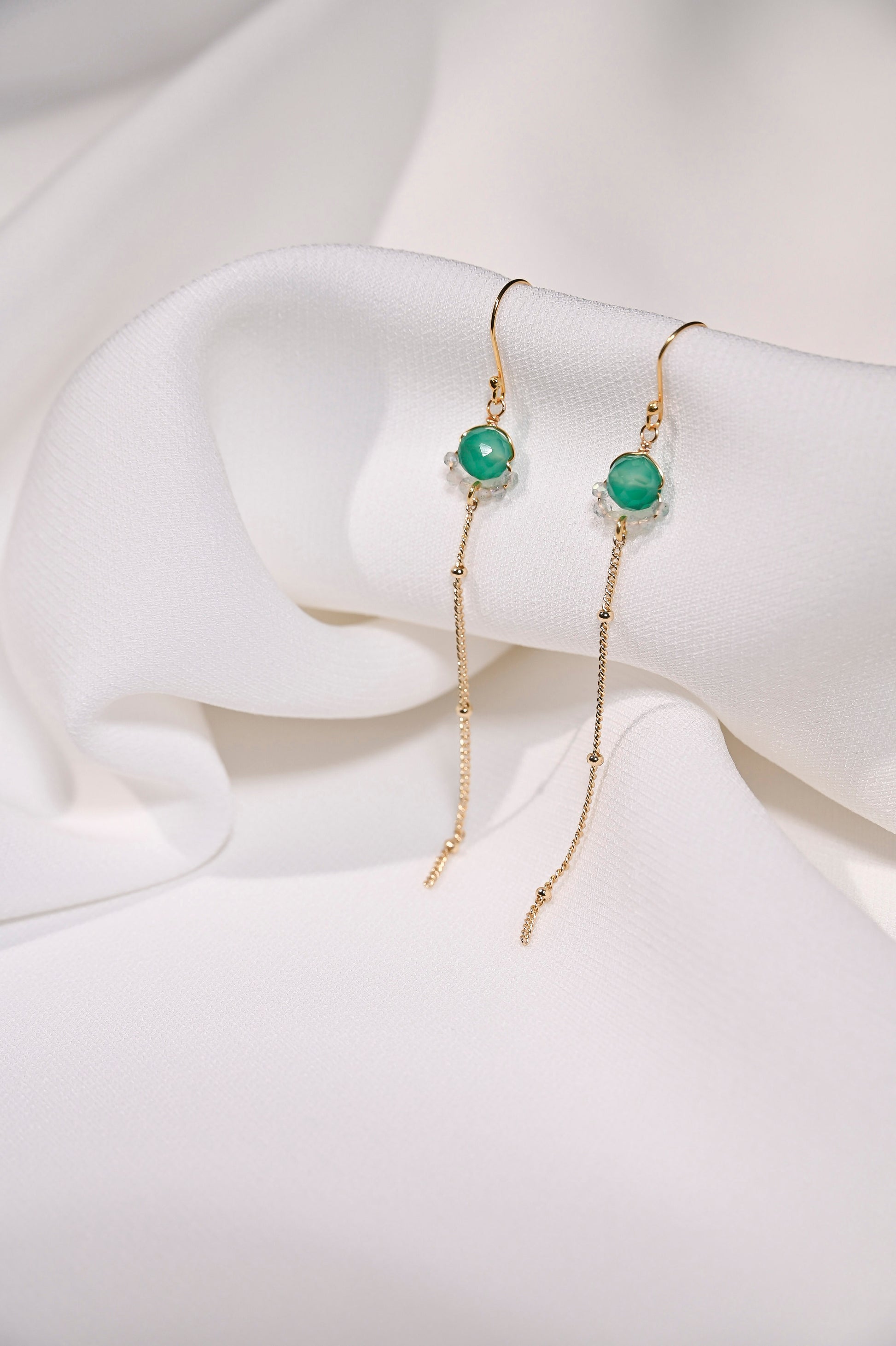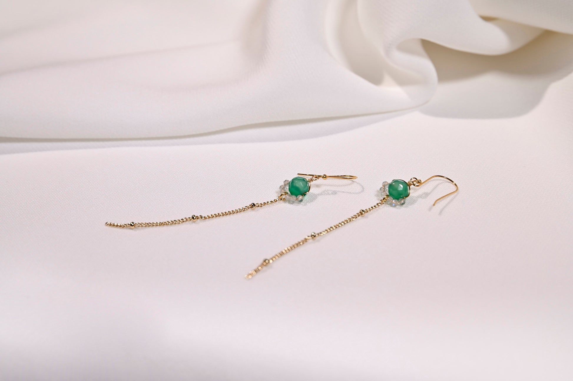 托月純銀耳環 / 綠瑪瑙 拉長石 / JIEGEM 姊的珠寶