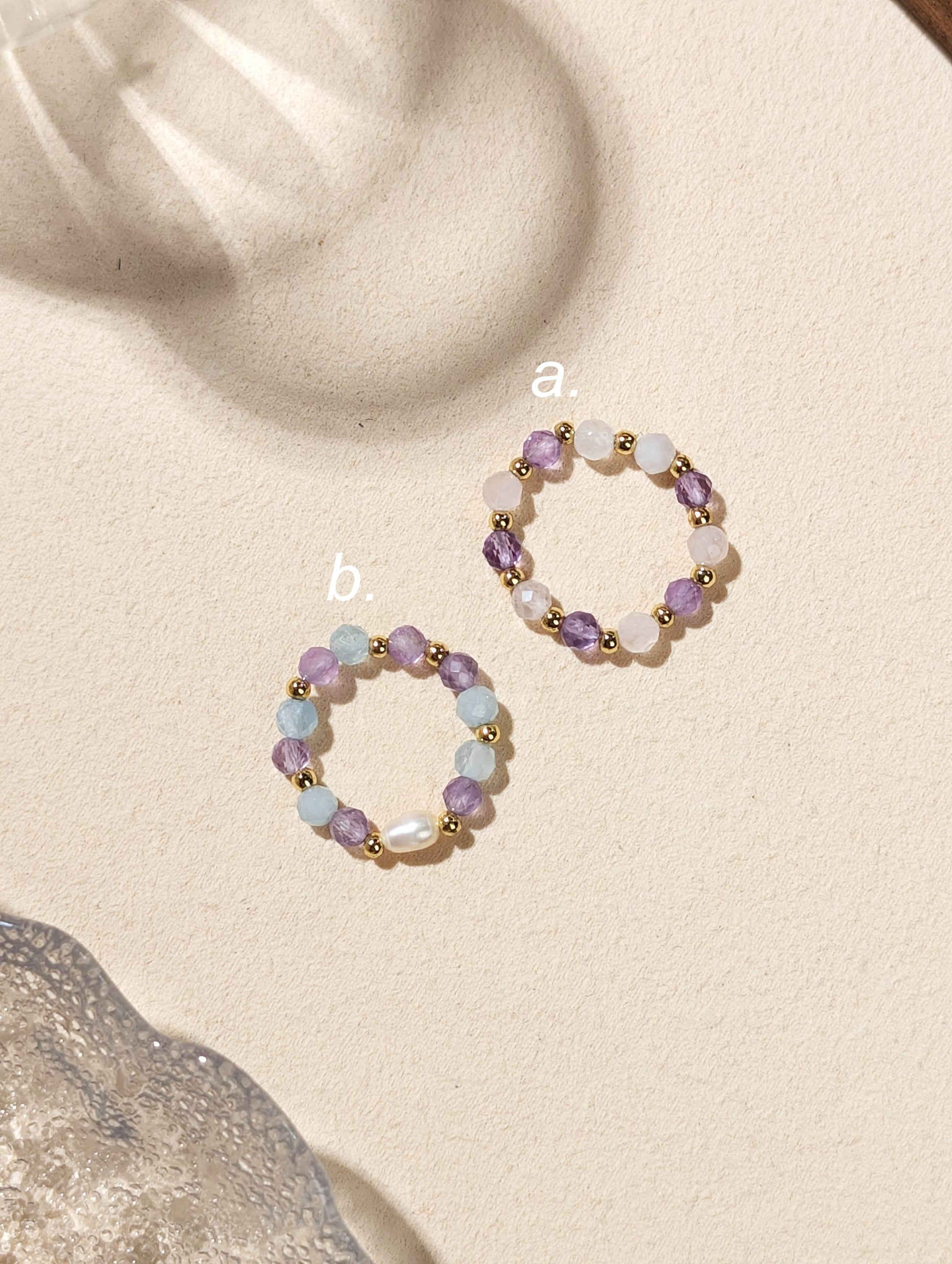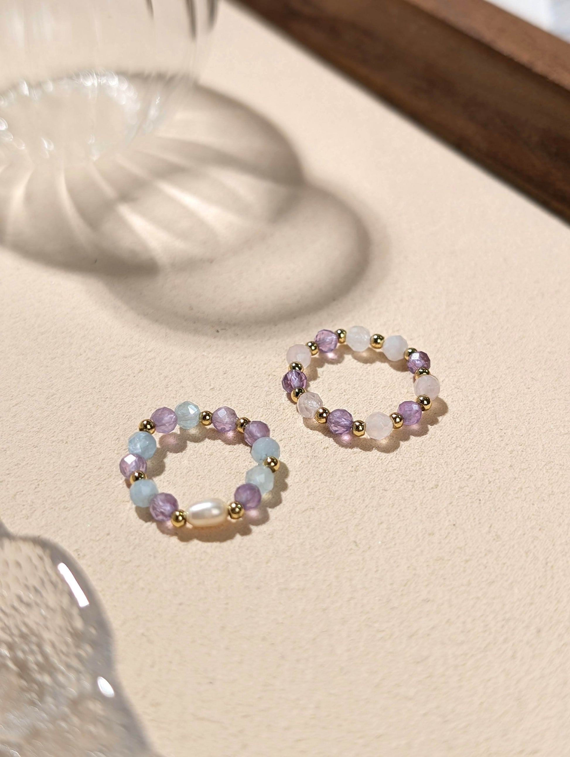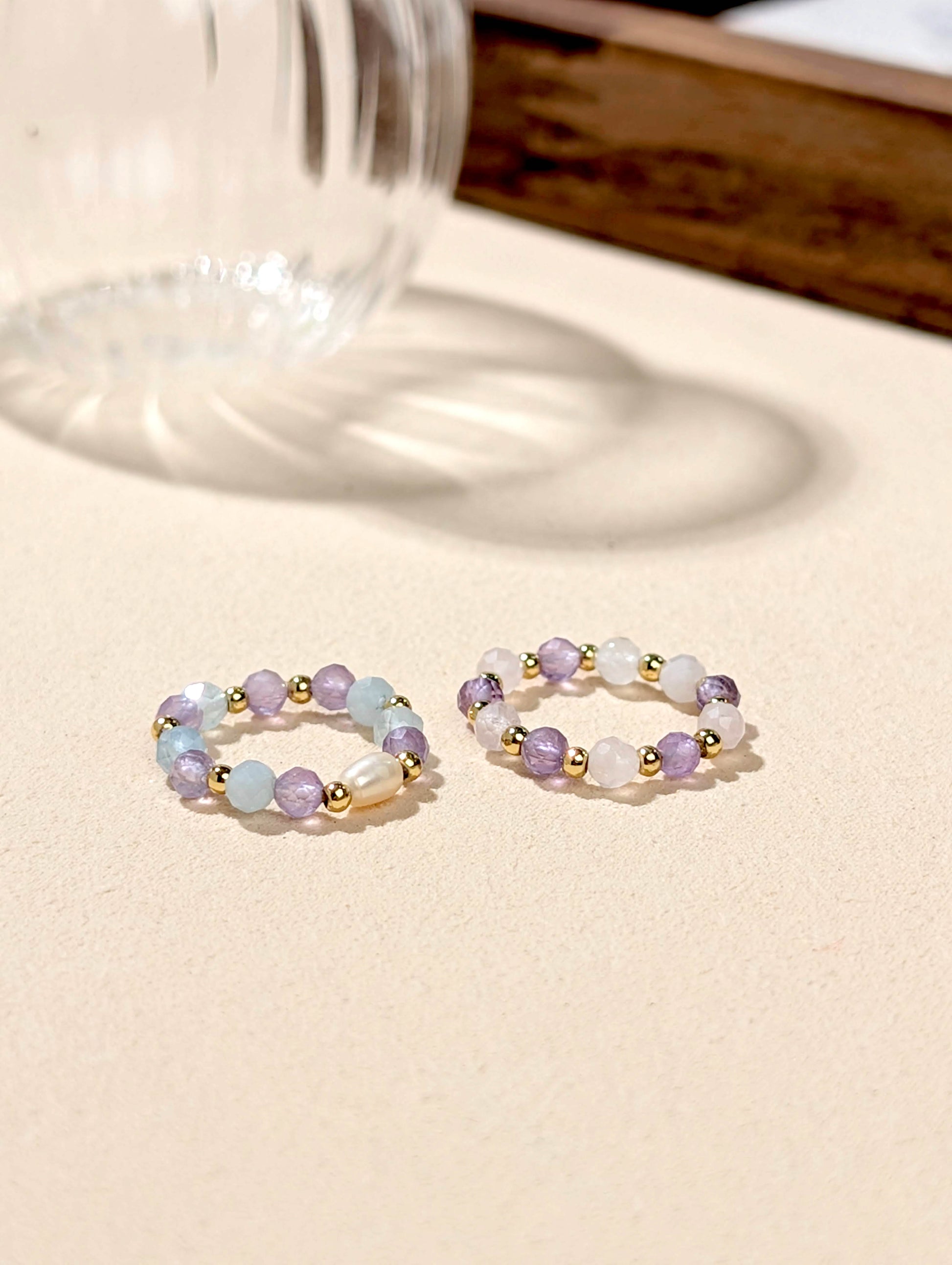 紫水晶 海藍寶 粉晶 珍珠 天然石串珠戒指 JIEGEM 姊的珠寶